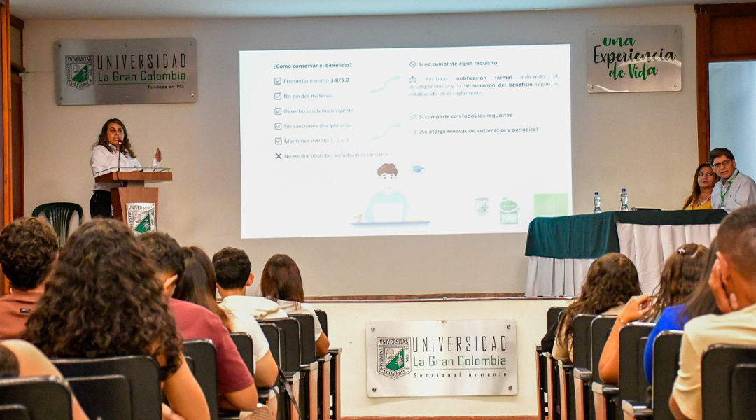 La Universidad La Gran Colombia Seccional Armenia, a través de la Facultad de la Vida y la Facultad de Ingenierías, realizó la socialización de importantes procesos de participación estudiantil. Desde la Facultad de la Vida, se presentó la convocatoria para la elección de representantes estudiantiles ante el Consejo Académico, dirigida a los alumnos de Medicina Veterinaria y Zootecnia. Por su parte, la Facultad de Ingenierías dio a conocer el proceso para la elección de representantes a la Consiliatura.