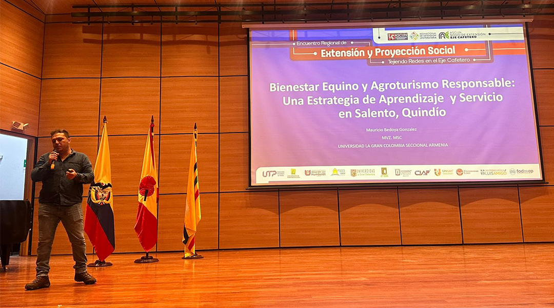 Esta semana, la Universidad de La Gran Colombia, seccional Armenia, tuvo el honor de recibir a dos distinguidos invitados provenientes de Argentina. Se trata de la docente María Agustina de Benedetti, quien se encuentra compartiendo su valioso conocimiento con los estudiantes del programa de Medicina Veterinaria y Zooctenia, y ha brindado una experiencia única a los futuros profesionales del área. Su presencia ha permitido un intercambio de saberes que sin duda dejará una huella significativa en la formación académica de los estudiantes.